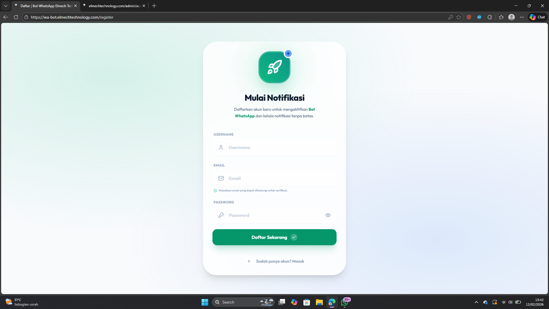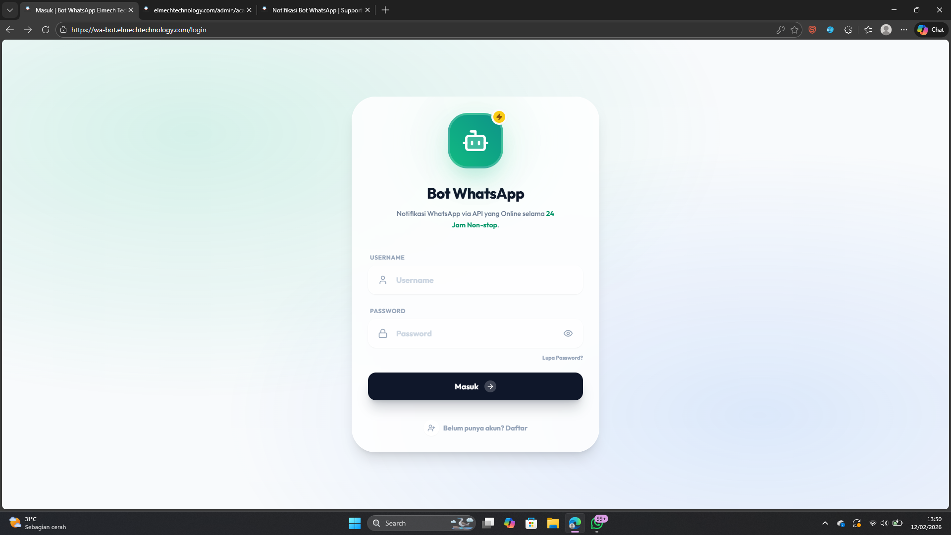 1 ). Akses url : https://wa-bot.elmechtechnology.com